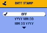 The current date is printed in the bottom right corner of new pictures. This setting remains until you change it. |