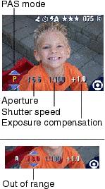 Use PAS mode when you want ultimate creative control. PAS mode gives you quick access to Program, Aperture priority, and Shutter priority modes. See Selecting Modes and Settings in PAS Mode for directions on how to select the modes and settings in PAS mode. |