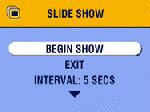 to highlight Begin Show, then press the OK button. Each picture and video is displayed once, in the order in which you took them. Then the camera returns to the Menu screen. |