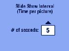 The default interval setting displays each picture for 5 seconds. You can increase the display interval to up to 60 seconds.