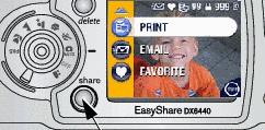 The Share button lets you "tag" your pictures and videos. When they are transferred to your computer, you can share: