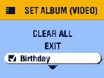 To remove a selection, highlight an album name and press the OK button. To remove all album selections, select Clear All.