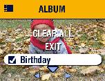 To remove a selection, highlight an album name and press the OK button. To remove all album selections, select Clear All.