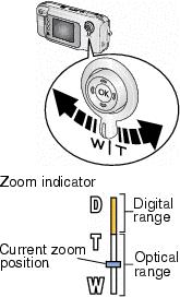 If the camera screen is turned on, the zoom indicator shows when you are in optical or digital zoom. |