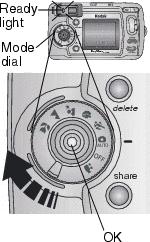 Rotate the Mode dial: Clockwise for still capture modes Counterclockwise for video mode The ready light blinks while the camera performs a self-check, then glows green when the camera is ready to take pictures (or videos, if the mode dial is set to ).