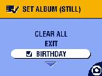 to highlight an album name, then press the OK button. Repeat to add pictures to more than one album. Selected albums are noted with a check mark. |