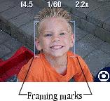 If the camera is not focusing on the desired subject (or if the framing marks disappear), release your finger, recompose the scene, and repeat Steps 2 and 3.