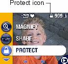 to highlight Protect , then press the OK button. The picture or video is protected and cannot be deleted. The Protect icon appears with the protected picture or video.
