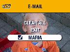 To remove a selection, highlight a checked address and press the OK button. To remove all email selections, highlight Clear All.