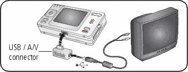 You can display pictures and videos on a television, computer monitor, or any device equipped with a video input. To connect the camera to a television, use the USB / A/V connector and A/V cable (may be sold separately).