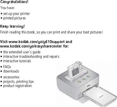 Kodak EasyShare G610 printer dock — Getting started guide