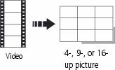 From a video, you can make a 4-, 9-, or 16-up picture, suitable for a 4 x 6-inch (10 x 15 cm) print.
