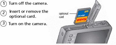 | IMPORTANT: | For best performance, format the card in the camera before taking pictures. |