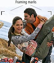 | NOTE: | Framing marks do not appear in all modes. Multiple framing marks may appear when faces are detected. When you press the Shutter button halfway down, the framing marks attempt to follow the main subject. |