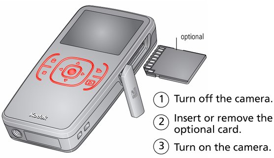 Table of Contents > Setting up your camera > Using an optional KODAK SD or SDHC Card