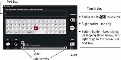 (Select) to enter it in the text box. (To highlight a character, slide along the bottom of the touch border or tap below the slider arrows.)