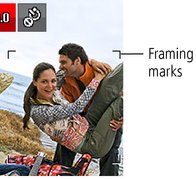 Framing marks indicate the camera focus area. In Smart Capture mode (and in SCN modes designed for pictures of people), the camera attempts to focus on faces.