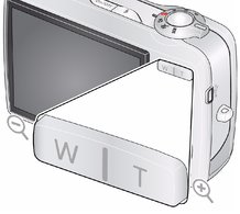 Use digital zoom to get up to 5X magnification beyond optical zoom when taking pictures/videos. Press Telephoto (T) until the slider on the LCD is at the end of the optical zoom range. Release Telephoto (T), then press it again.