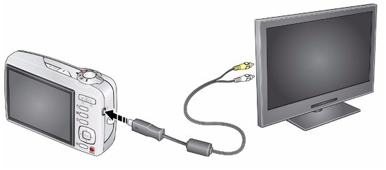 You can display pictures/videos on a television, computer monitor, or any device equipped with a video input. To connect the camera directly to a television, use an A/V cable (may be sold separately).