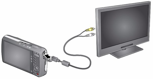 You can display pictures/videos on a television, computer monitor, or any device equipped with a video input. To connect the camera directly to a television, use an A/V cable (may be sold separately).