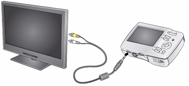 You can display pictures/videos on a television, computer monitor, or any device equipped with a video input. To connect the camera directly to a television, use an A/V cable (may be sold separately).