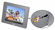 Pictures play from a memory card or USB device whenever one is inserted in the frame.