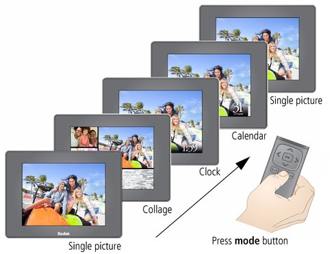 Press the mode button to change how you display pictures on your frame.