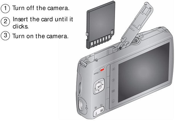 Table of Contents > Setting up your camera > Storing pictures on an optional SD or SDHC Card