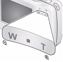 To zoom out, press Wide Angle (W). The zoom slider shows the zoom level on the LCD. |