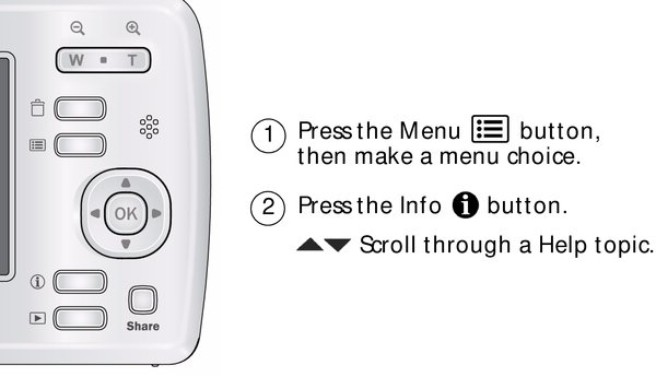 Your camera offers a built-in Help system. It describes every setting for every menu choice. If you learn nothing else about your camera, learn how to use on-camera Help.