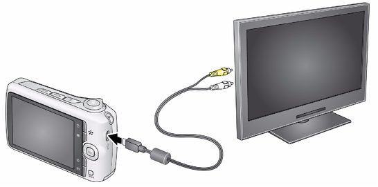 You can display pictures/videos on a television, computer monitor, or any device equipped with a video input. To connect the camera directly to a television, use an A/V cable (may be sold separately).
