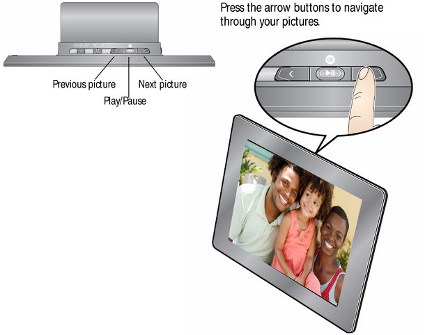Navigation and play buttons To move more quickly through your pictures, press and hold an arrow button. |