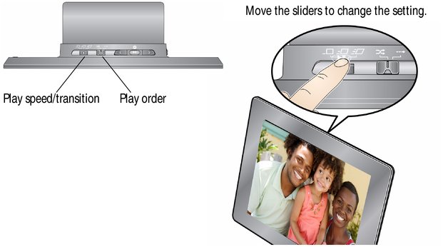 Table of Contents > Viewing pictures > Changing play speed, transitions, and order