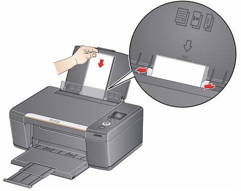 Load photo paper (short side first) into the center of the input tray with the glossy side toward you (see Loading photo paper ), and move the paper-edge guides until they touch the paper.