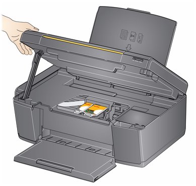Lift the printer access door, and wait for the carriage to move to a position where you can access it.