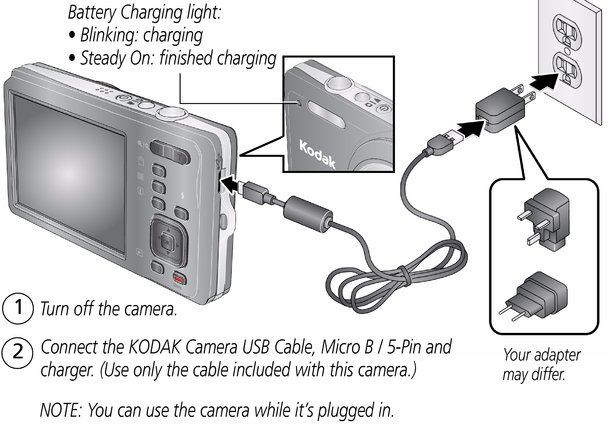 Table of Contents > Setting up your camera > Charging the battery
