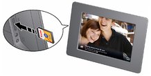Pictures play from a memory card or USB device whenever one is inserted in the frame.