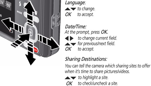 Table of Contents > Setting up your camera > Setting the language and date/time