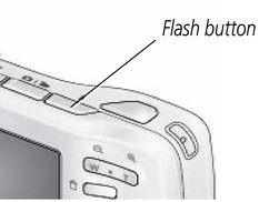 Press the Flash button repeatedly until the LCD displays the desired flash mode.