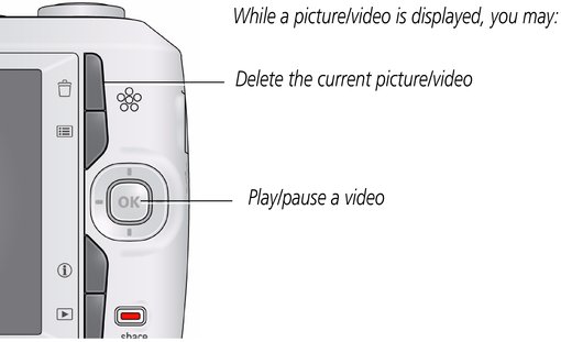 After you take a picture/video, the LCD briefly displays the picture or the first frame of a video. (To take new pictures/videos sooner, press the Shutter button halfway.)