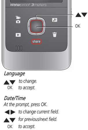 Table of Contents > Getting started with your camera > Setting the language, date/time
