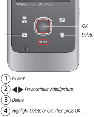 Table of Contents > Getting started with your camera > Deleting videos/pictures