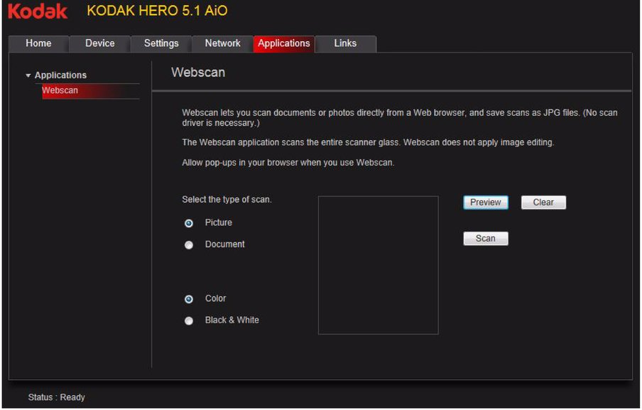Table of Contents > Scanning > Scanning from the Online Printer Management Tool