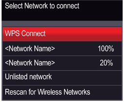 The Wi-Fi connectivity LED blinks as the printer searches for available wireless networks within range, then displays the list in order of signal strength. For example: