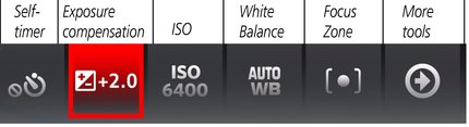 Program mode gives access to manual settings like ISO, White Balance, Focus Zone, and Exposure Compensation.
