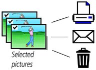 Use the multi-select feature when you have two or more pictures to print, share, delete, protect/unprotect, tag with keyword, etc. Multi-select is only available in thumbnail view (see Viewing pictures as thumbnails).