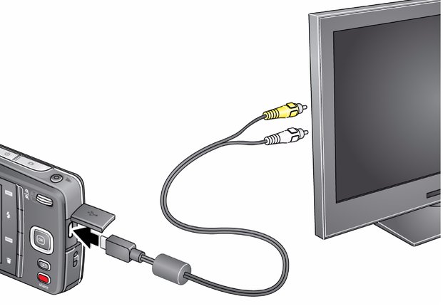 You can display pictures/videos on a television, computer monitor, or any device equipped with a composite video input. To connect the camera directly to a television, use a composite cable (may be sold separately). Use the camera controls to navigate through pictures/videos on the television.