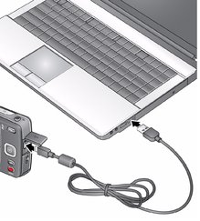 Using the KODAK Camera USB Cable, Micro B / 5-Pin, connect the camera to the computer. (Use only the cable included with this camera.)