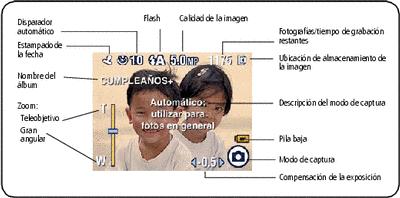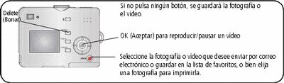 Después de tomar una fotografía o grabar un vídeo, la pantalla LCD muestra la toma durante aproximadamente 5 segundos.