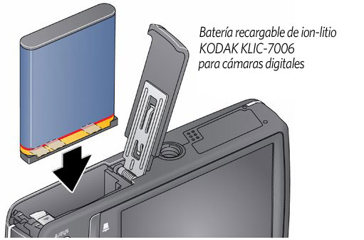 Contenido > Configuración de la cámara > Cómo instalar la batería KLIC-7006